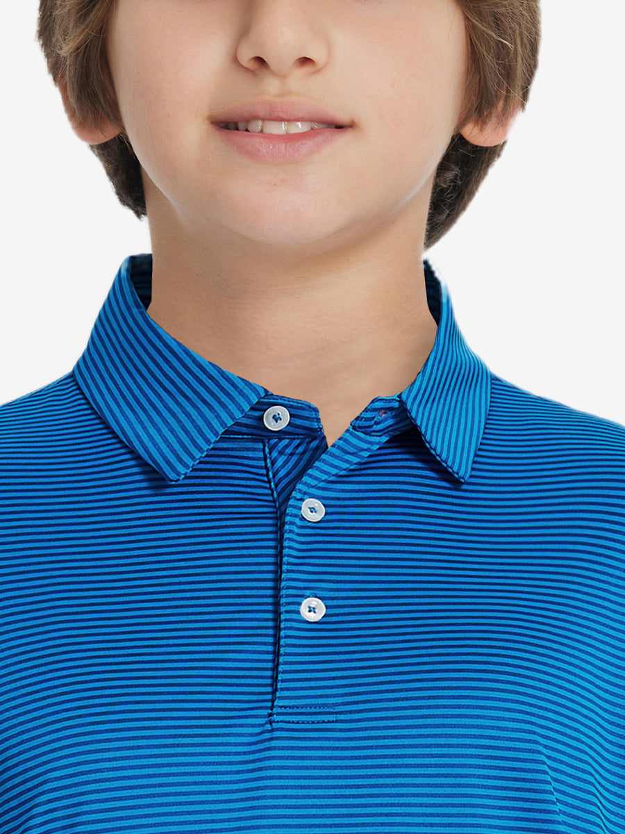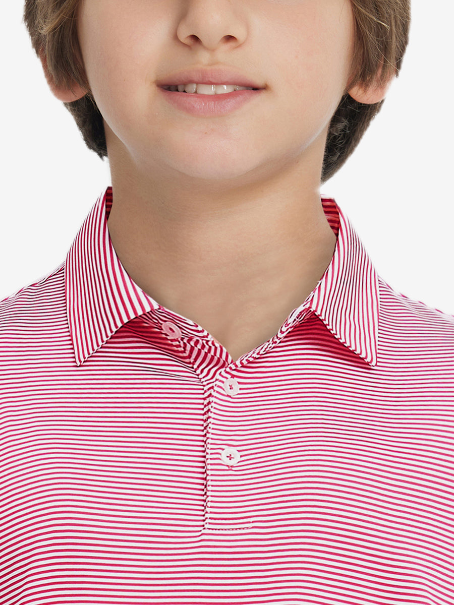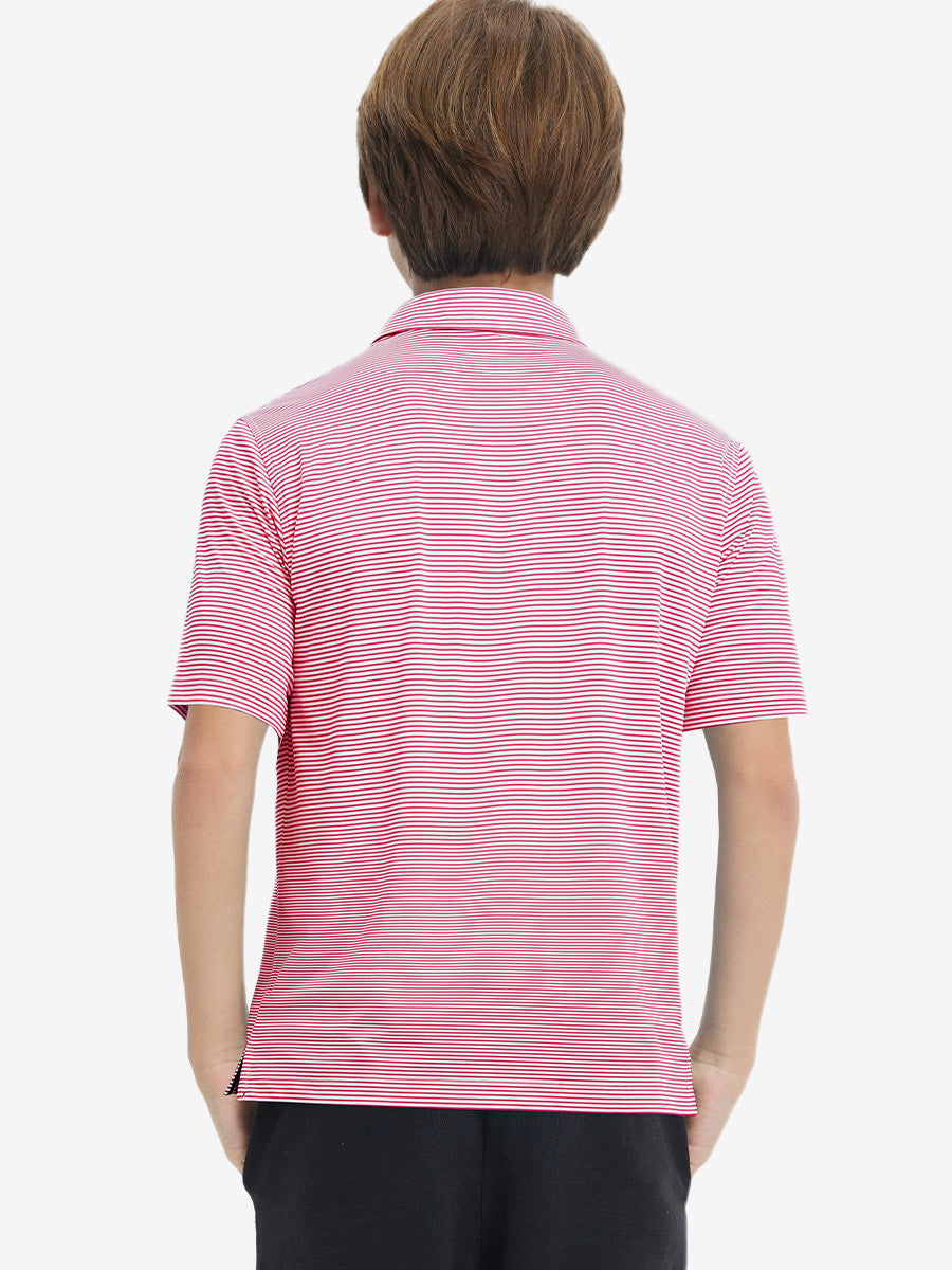 Performance Cooling Polo - Youth crafted from polyester spandex striped jersey. Lightweight, moisture-wicking, quick-drying, UPF 50+, soft hand-feel, 4-way stretch for comfort and breathability. Special construction ensures a no-curl collar and maintains shape.
