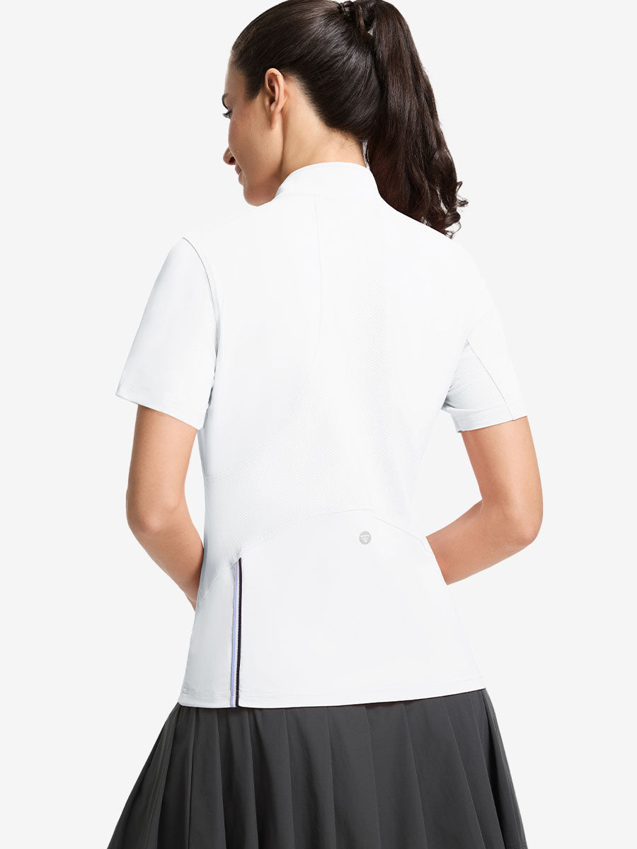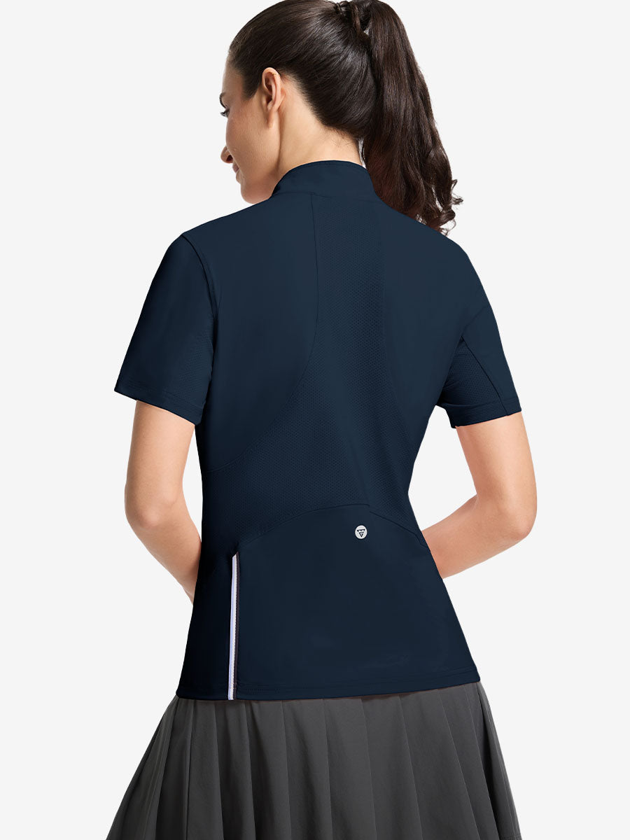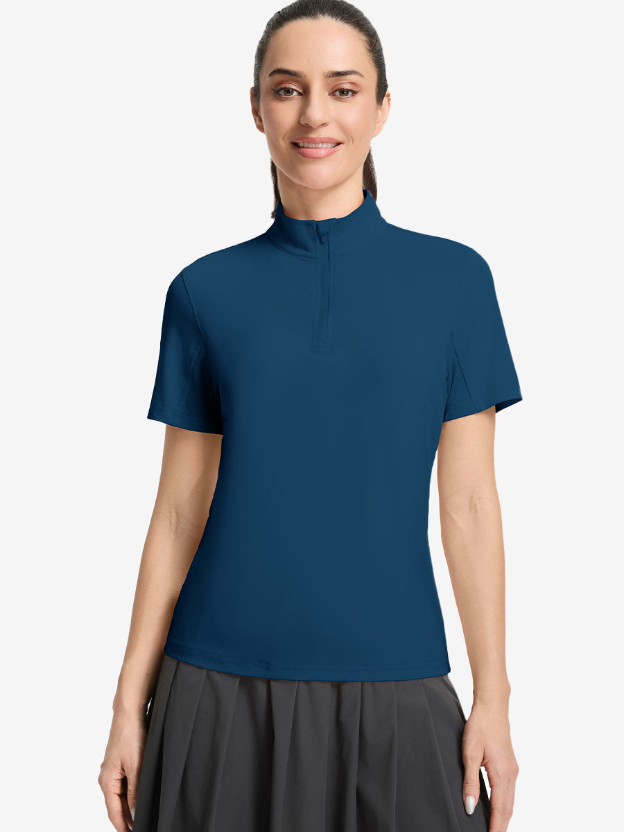 Stay cool and stylish in our Women's Breathable 1/4 Zip Pullover Golf Shirts. Designed with targeted breathable, moisture-wicking fabric at the back and underarms for all-day comfort. The ¼-zip front offers easy wear and a clean mock neck for a polished look, while the versatile design transitions seamlessly from golf and yoga to office or errands. Lightweight, functional, and effortlessly chic!