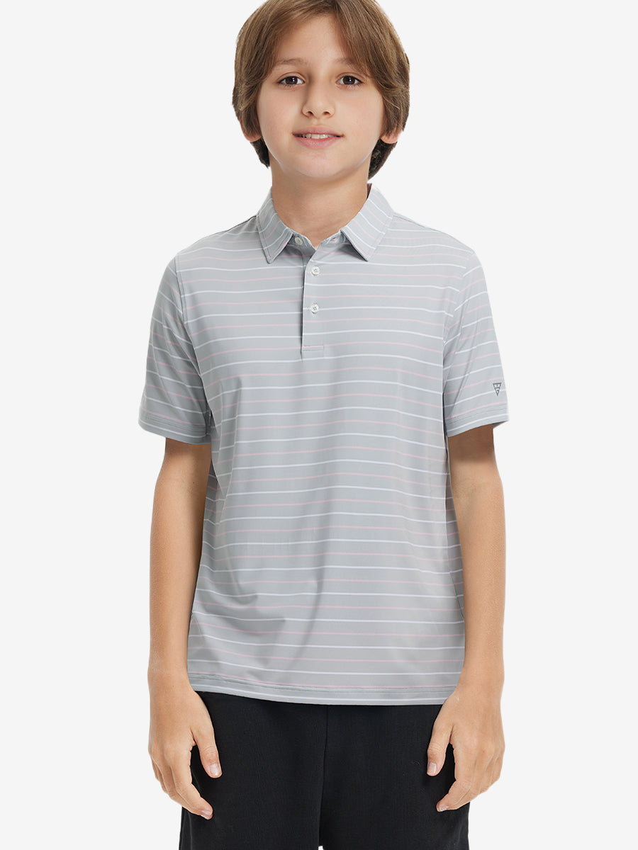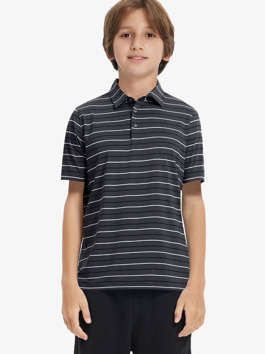 Presentamos nuestros polos a rayas modernos para niños. Hechos de una mezcla de poliéster y elastano de alta calidad, estos polos suaves, agradables para la piel y ligeros mantienen a tus pequeños frescos y secos en climas cálidos. Con tela elástica en 4 direcciones y un teñido de primera calidad, esta vibrante camiseta de golf juvenil se mantiene duradera lavado tras lavado, perfecta para niños activos que aman jugar.