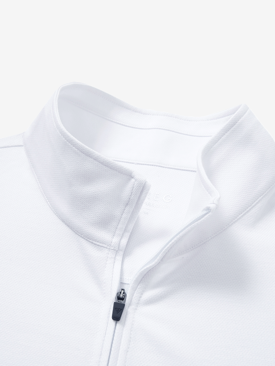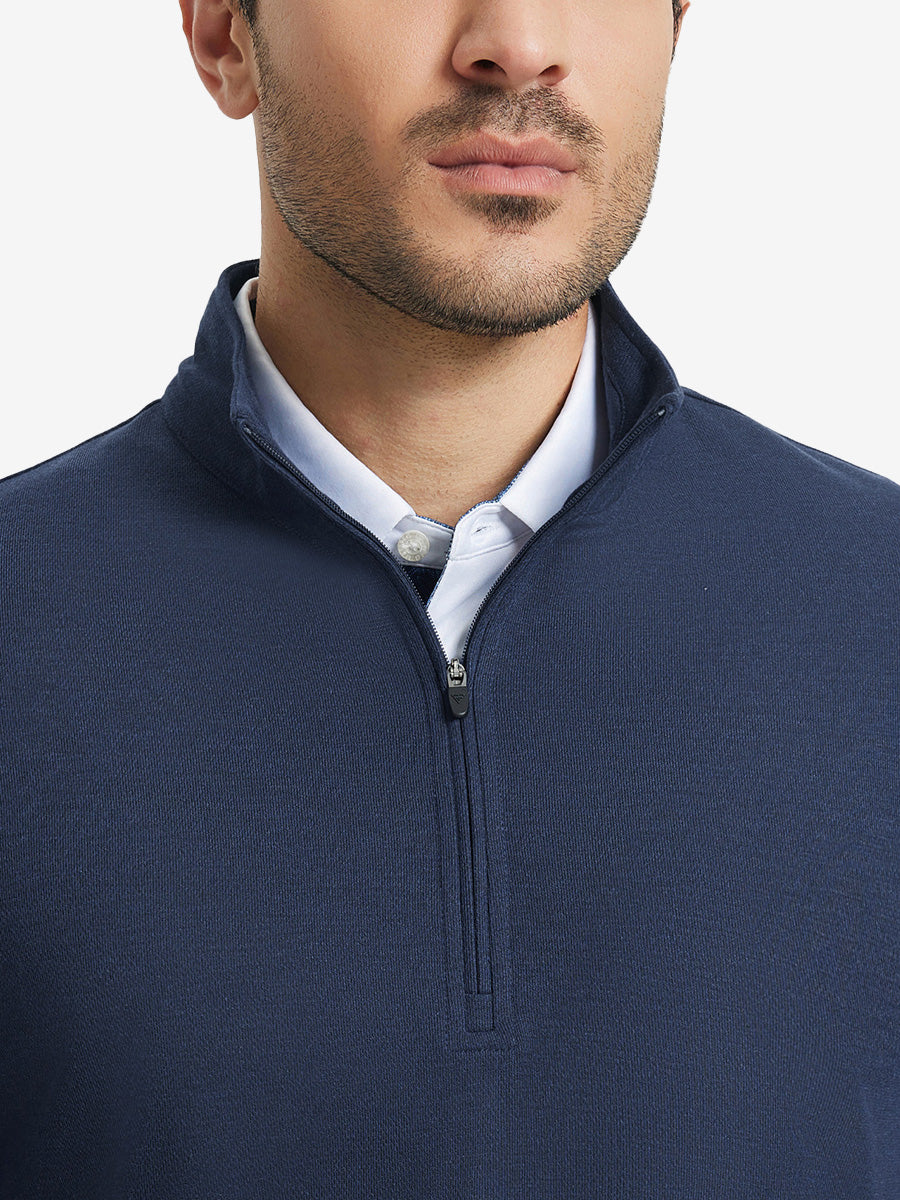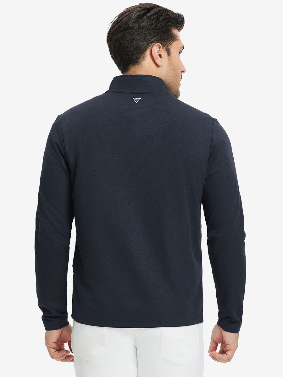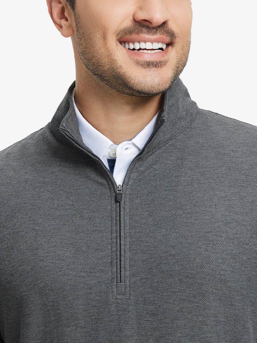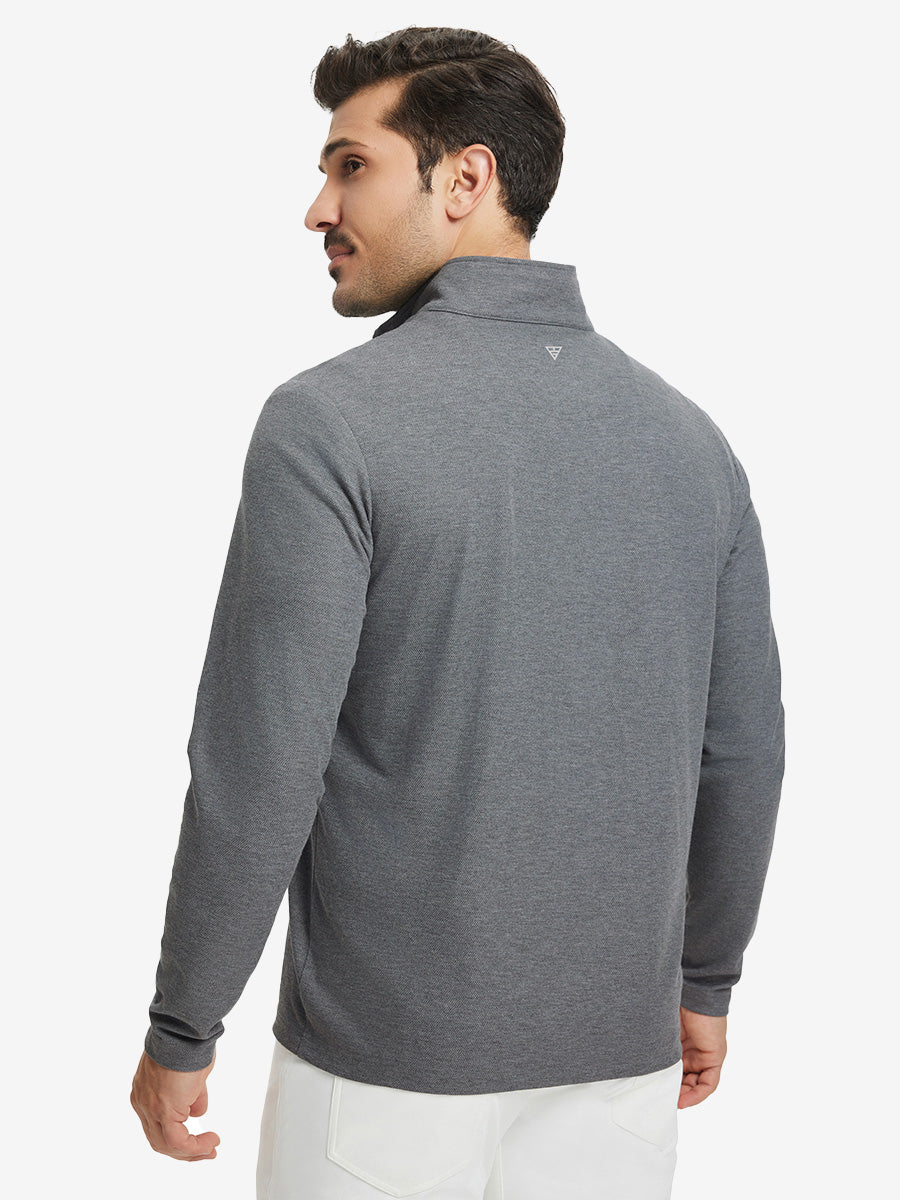 Experience ultimate comfort and style with our Premium Jacquard Quarter Zip Pullover. Crafted from performance herringbone fabric, it offers dry fit technology and UPF 50+ protection. This men's sweatshirt is ideal for staying warm in cold weather and perfect for layering in autumn and winter. The elaborately developed fabric ensures wear-resistance and durability, while maintaining a slight stretch for ease of movement. With meticulous stitching and exquisite details, this pullover is a perfect blend of quality and functionality.