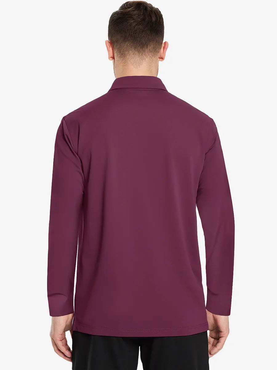 Elevate your style on the course with our Long Sleeve Performance Solid Pique Polo. Crafted for comfort and performance, this moisture-wicking, quick-dry shirt features UPF30+ sun protection, a luxuriously soft feel, and 4-way stretch. Designed for golf enthusiasts, the plain pique design with grey contrast detailing exudes sophistication. Enjoy all-day comfort and a touch of elegance with well-made stitching and natural stretch fabric.