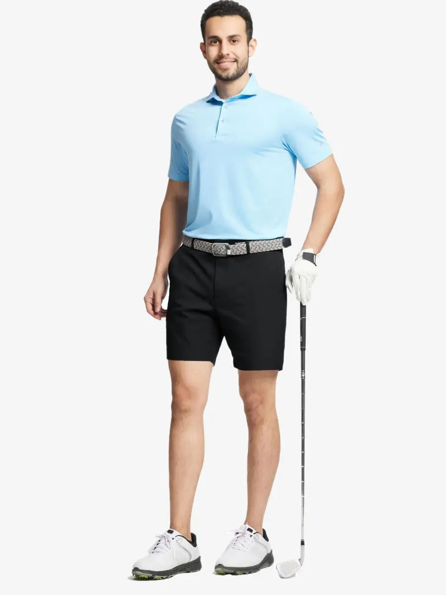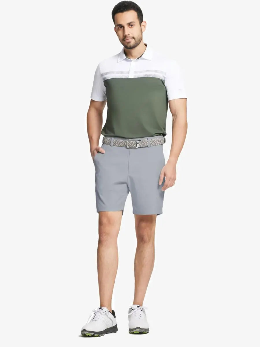 This shorts definitely fit very well and they feel well too. Inseam is perfect roomy but not baggy. I feels cool when wearing and I splash water and they dry super fast. They have the perfect mix of flex material to wrap around your body. Easy to put golf balls on pockets if needed. Color is exactly as pictured. Size is right fit